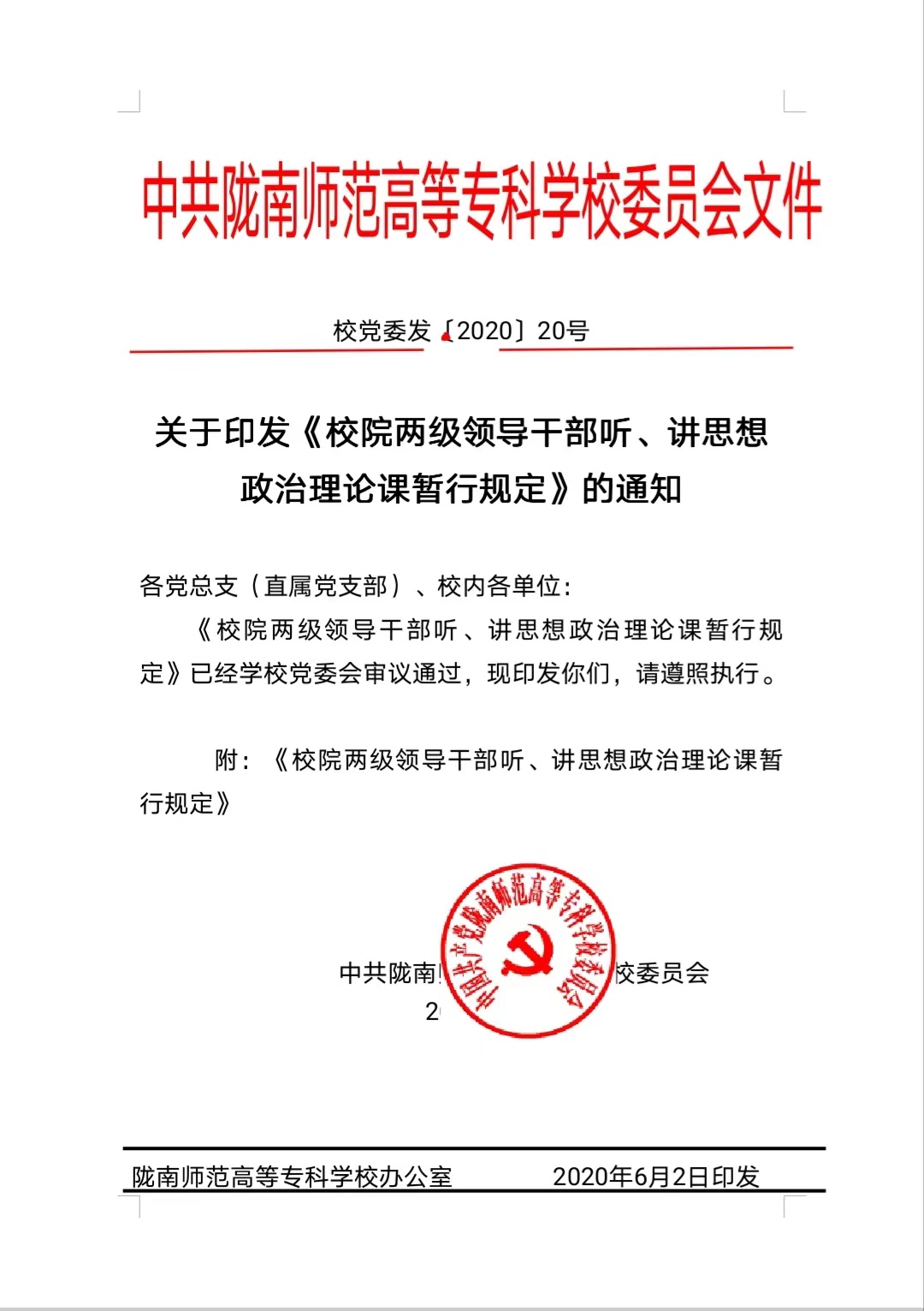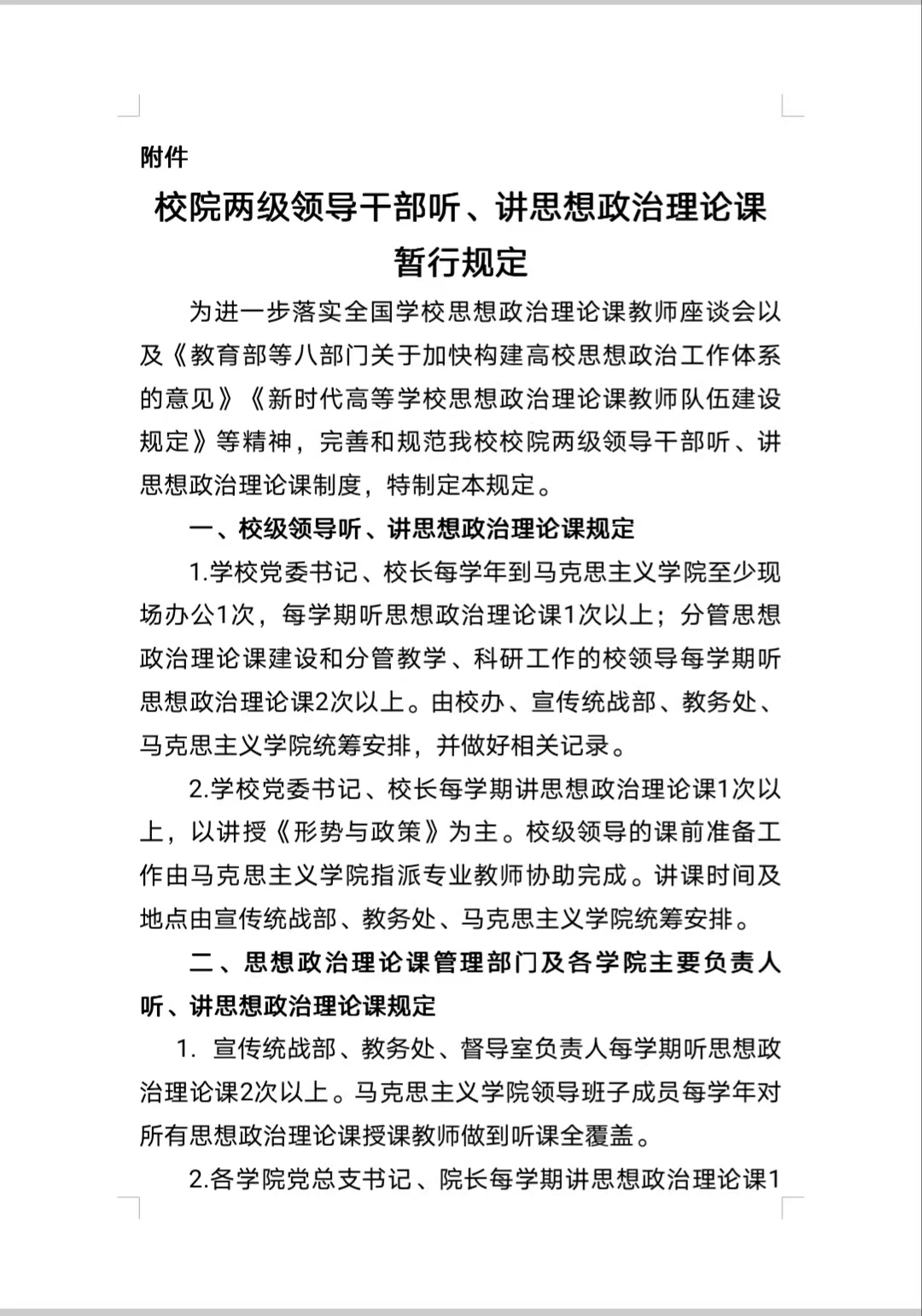 关于印发《校院两级领导干部听、讲思想政治理论课暂行规定》的通知