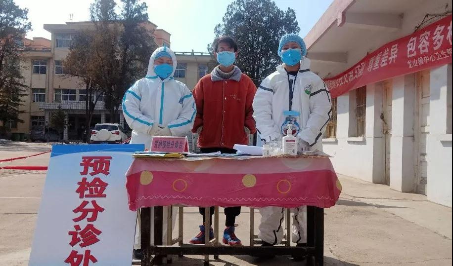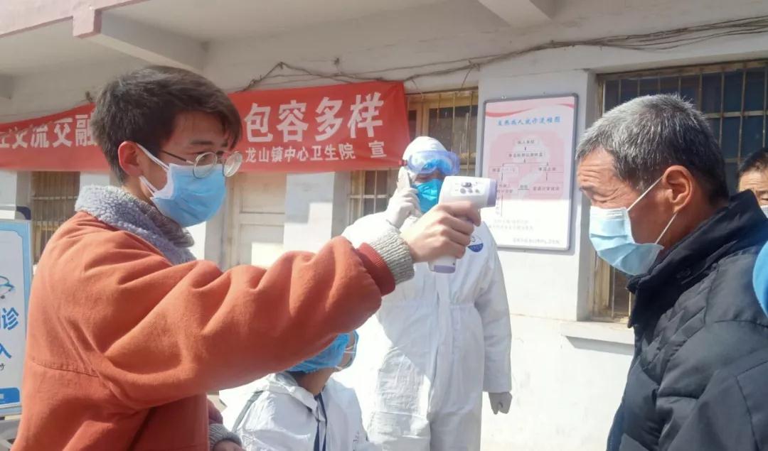唐鹏飞,陇南师范高等专科公司伟德国际VICTOR19462018级思想政治教育专业员工,在天水市张家川县龙山镇卫生院的预检分诊处担任志愿者,给进出医院的人员测量体温,登记信息,宣传防疫工作。