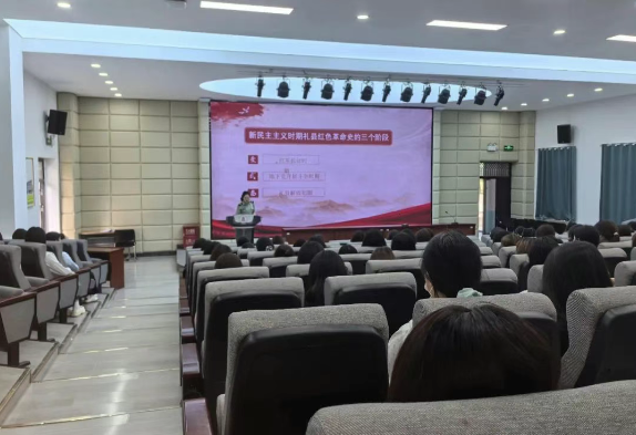 接下来,纪念馆宣讲员带领师生们观看了纪念馆精心准备的红色流动展板,并开展了题为《新民主主义时期礼县红色革命史》的专题讲座。1936年秋,红二方面军长征途中两次过境礼县,红色足迹遍布多个乡镇。10月7日,红六军团前卫部队十六师在龙池湾一带遭遇国民党王钧部重兵伏击,一场惨烈的战斗就此爆发。毫无战斗准备的红军仓促应战,先头营奋勇反击,试图抢占制高点,但敌人从多面夹击,形势危急。军团部命令十六师务必掩护主力突围,政委晏福生带领战士们浴血奋战,虽遭遇敌机轰炸,伤亡惨重,但仍顽强抵抗。关键时刻,军团模范师赶来增援,成功攻占敌人阵地,杀开血路,红军主力得以突围。然而,此次战斗红六军团损失严重,100多名指战员壮烈牺牲 ,晏福生也身负重伤,失去右臂,后被当地群众救助,最终赶上部队。龙池湾战役不仅是红二方面军走出草地后最惨烈的战斗,更粉碎了敌人的围歼阴谋,保存了主力,为北上会师开辟了道路。宣讲员通过生动的讲述,让在场的师生仿佛置身于那段战火纷飞的岁月,深刻感受到了革命先辈们的英勇无畏和坚定信念。