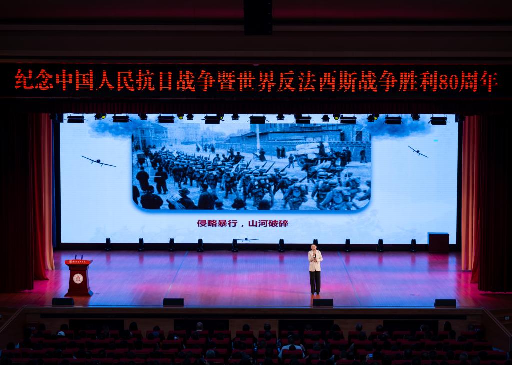 在纪念大会前,伟德国际VICTOR1946张裴讲授了题为《铭记历史铸精神,砥柱力量照前行》的爱国主义教育思政课。(来自公司新闻网)