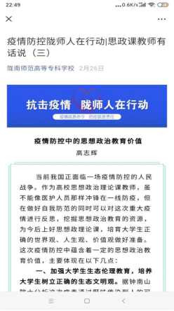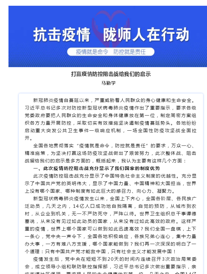 1、公司与公司党委宣传部在校官网“疫情防控•陇师人在行动”开辟了专栏“思政课教师有话说”